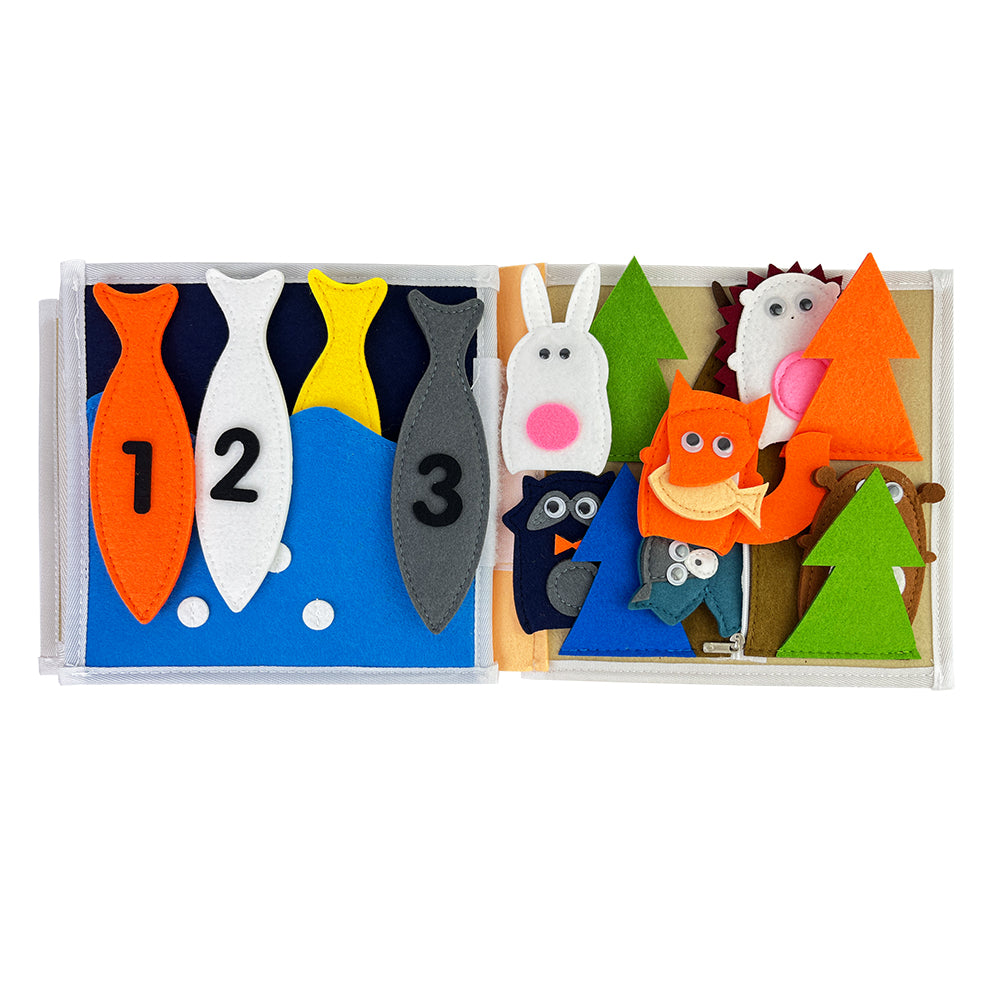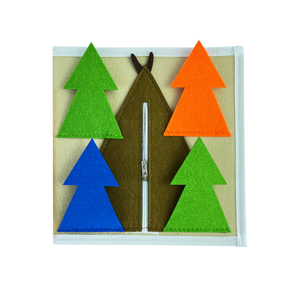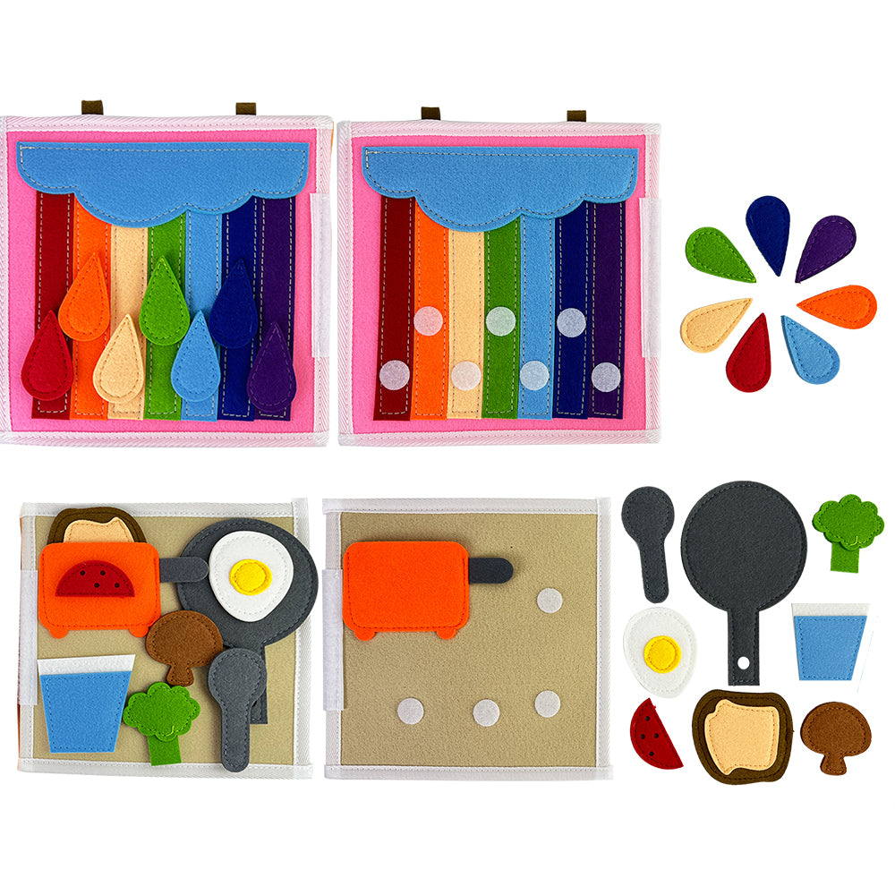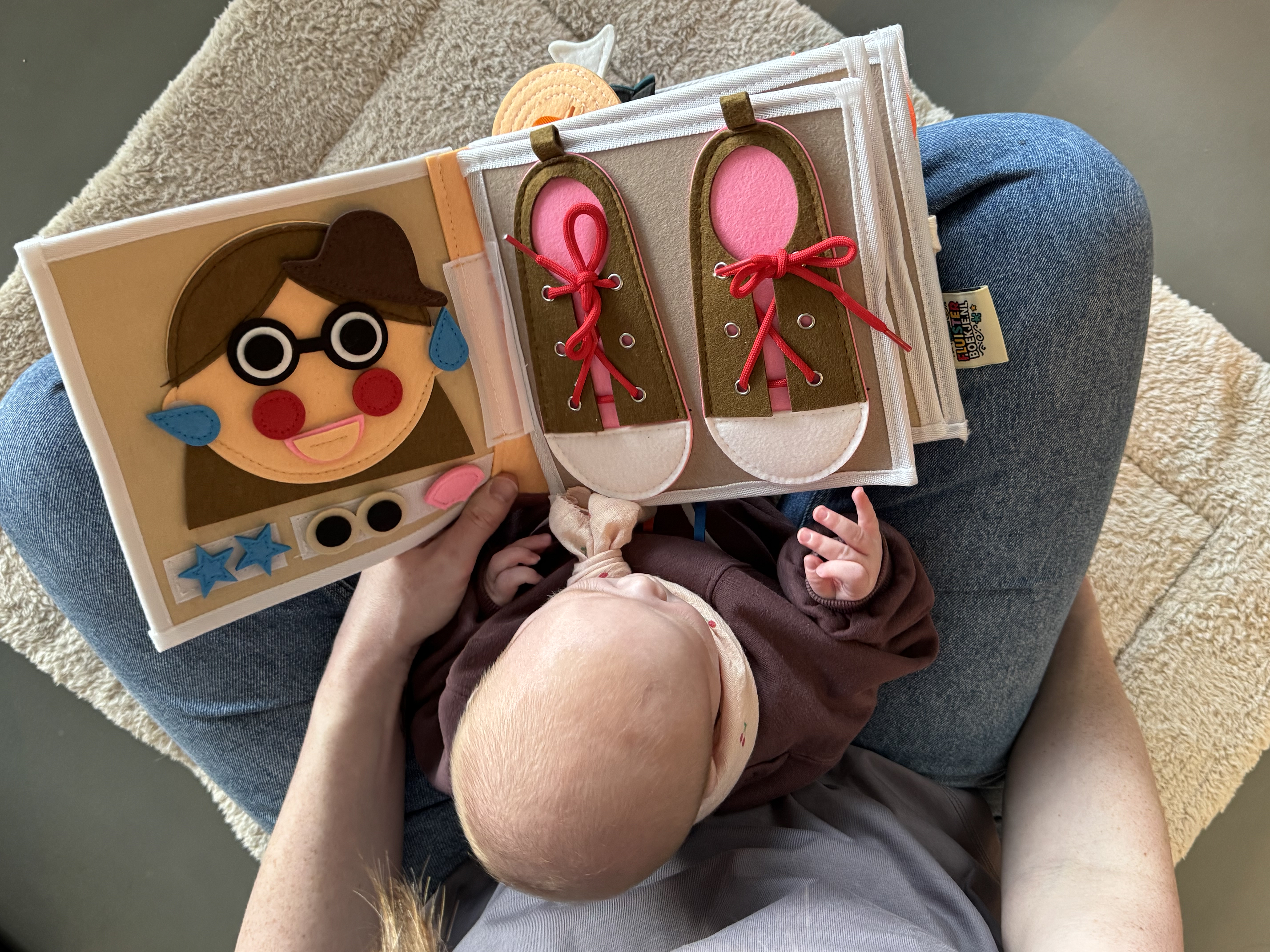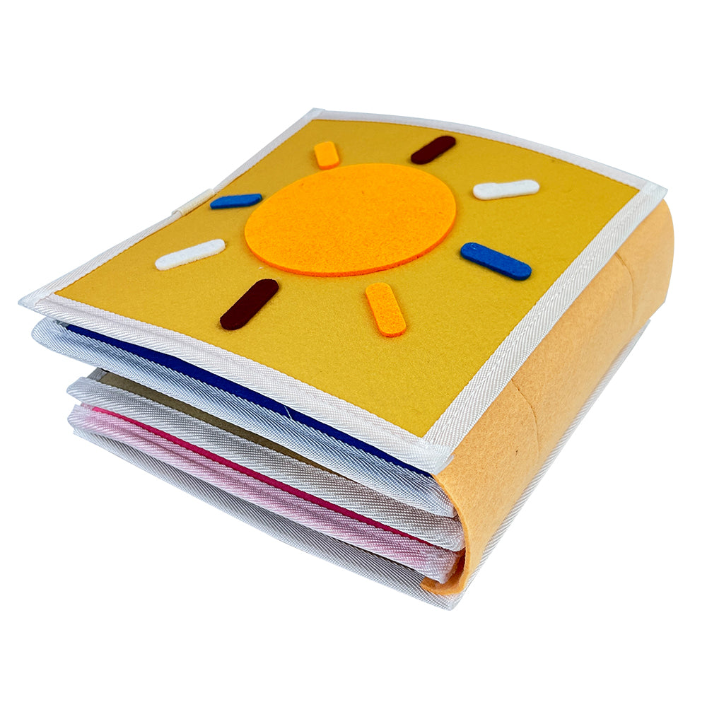 Fluisterboekjes zijn zachte, handgemaakte speelboekjes die kinderen uitdagen om te knopen, ritsen, sorteren, matchen en ontdekken.