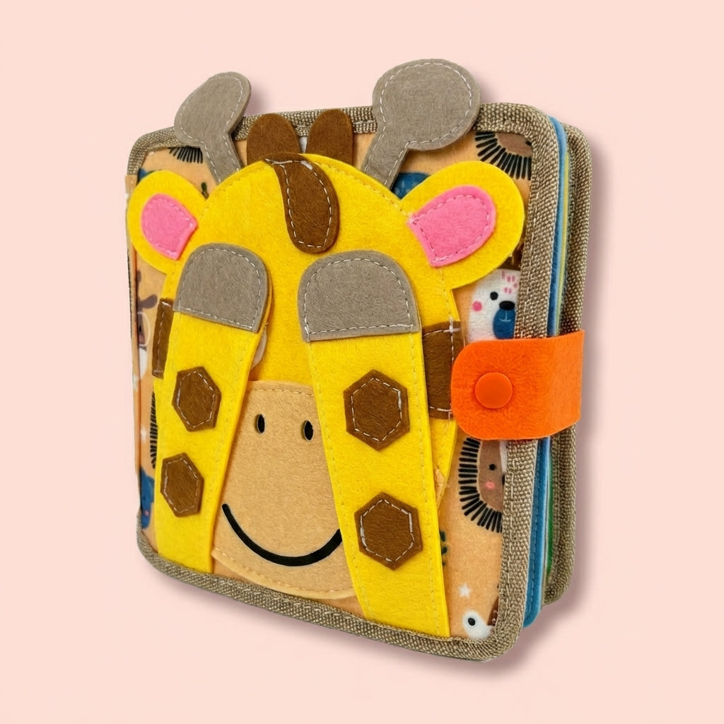 In dit zachte Fluisterboekje gaat je kindje samen met een nieuwsgierige giraffe op ontdekkingstocht langs dieren, eten en kleuren. Het boekje bestaat uit 8 interactieve pagina’s vol speelse details, afneembare onderdelen en educatieve activiteiten die uitnodigen tot sensorisch ontdekken en zelfstandig spelen.