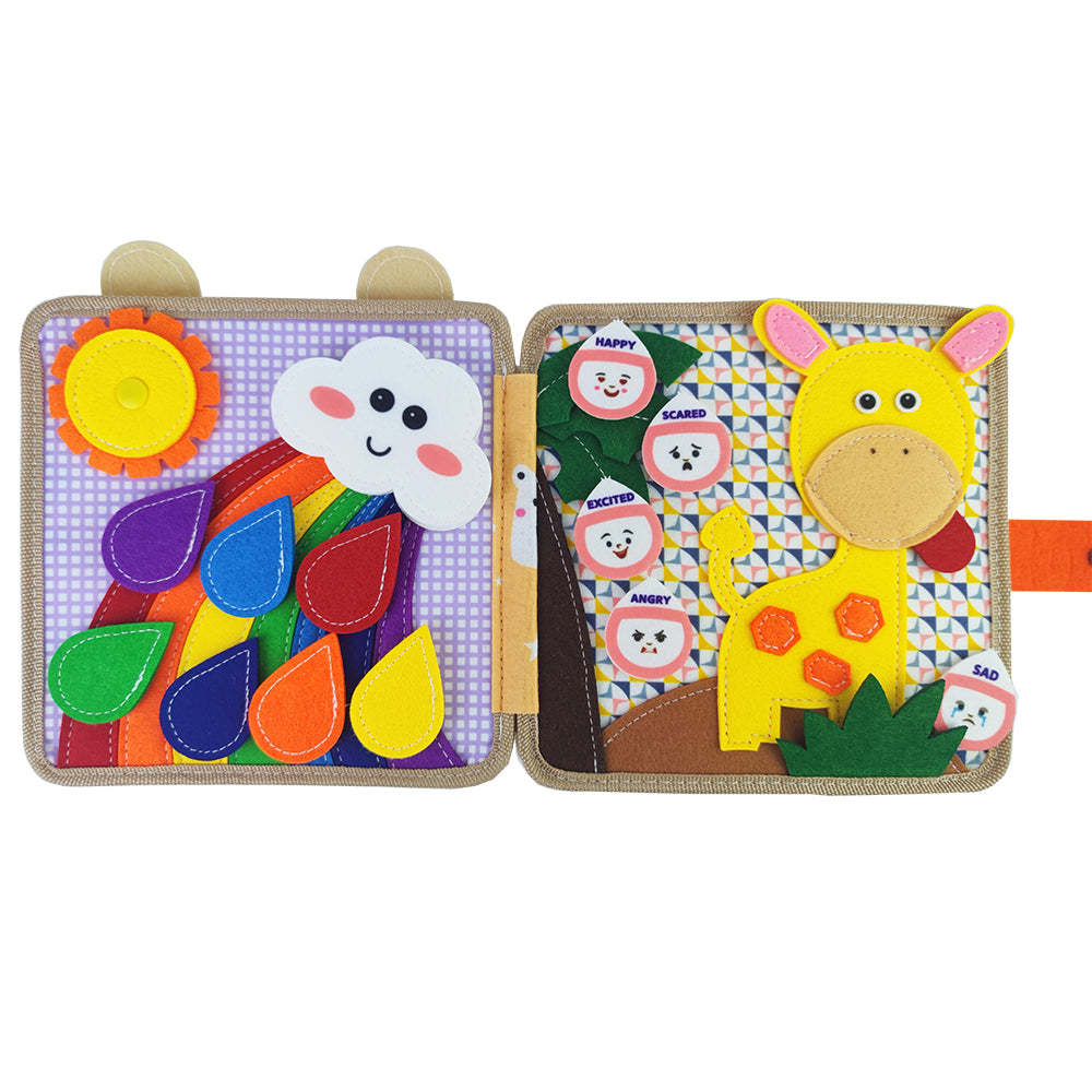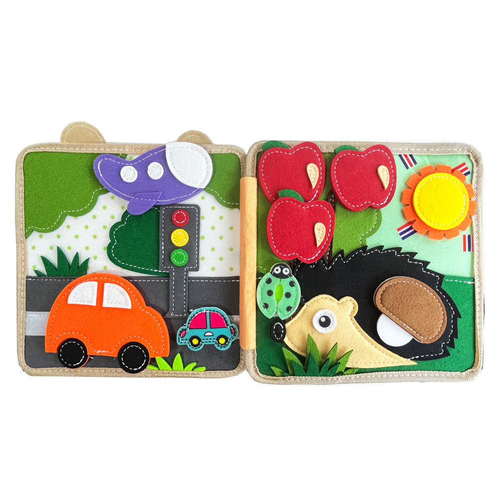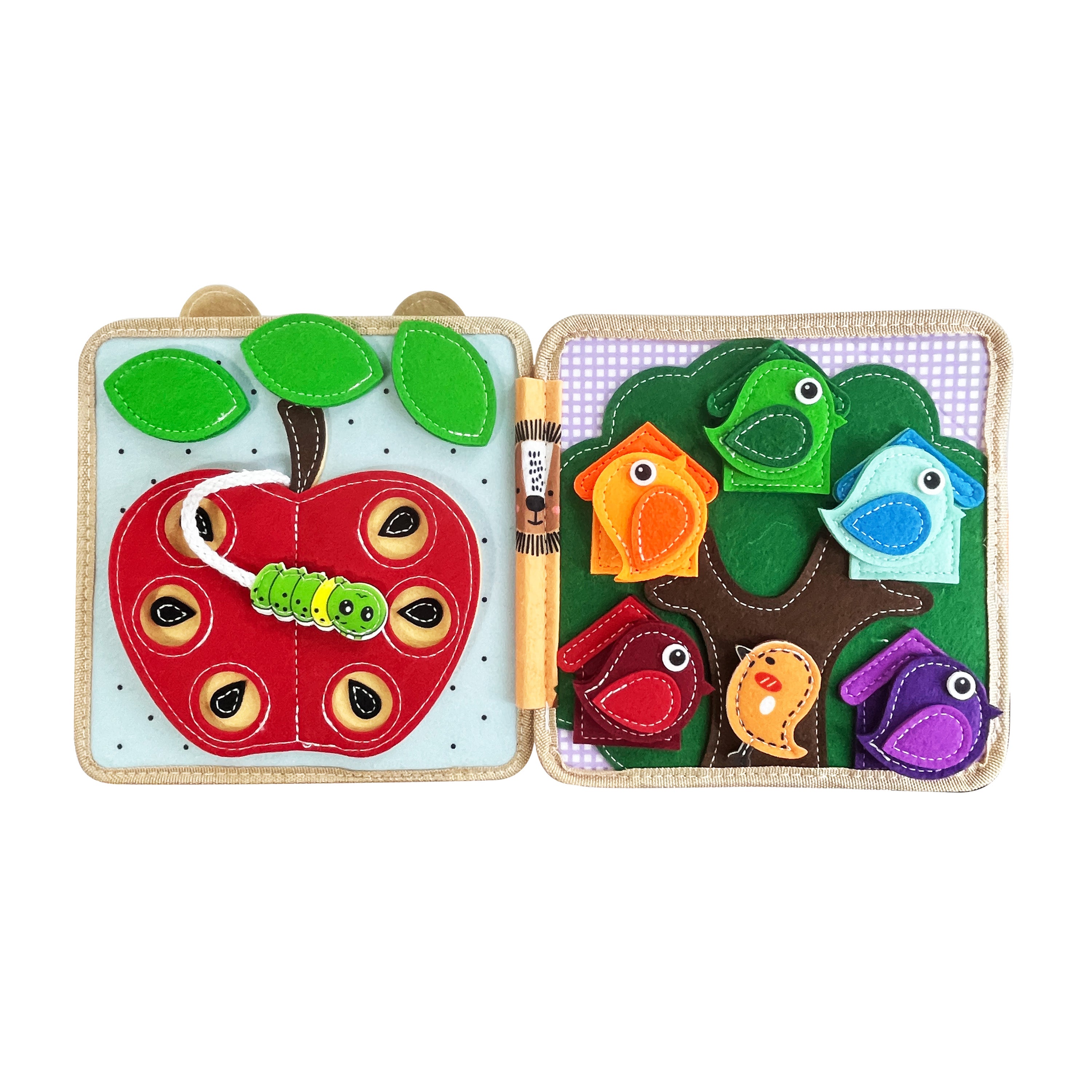 Fluisterboekjes zijn zachte, handgemaakte speelboekjes die kinderen uitdagen om te knopen, ritsen, sorteren, matchen en ontdekken.