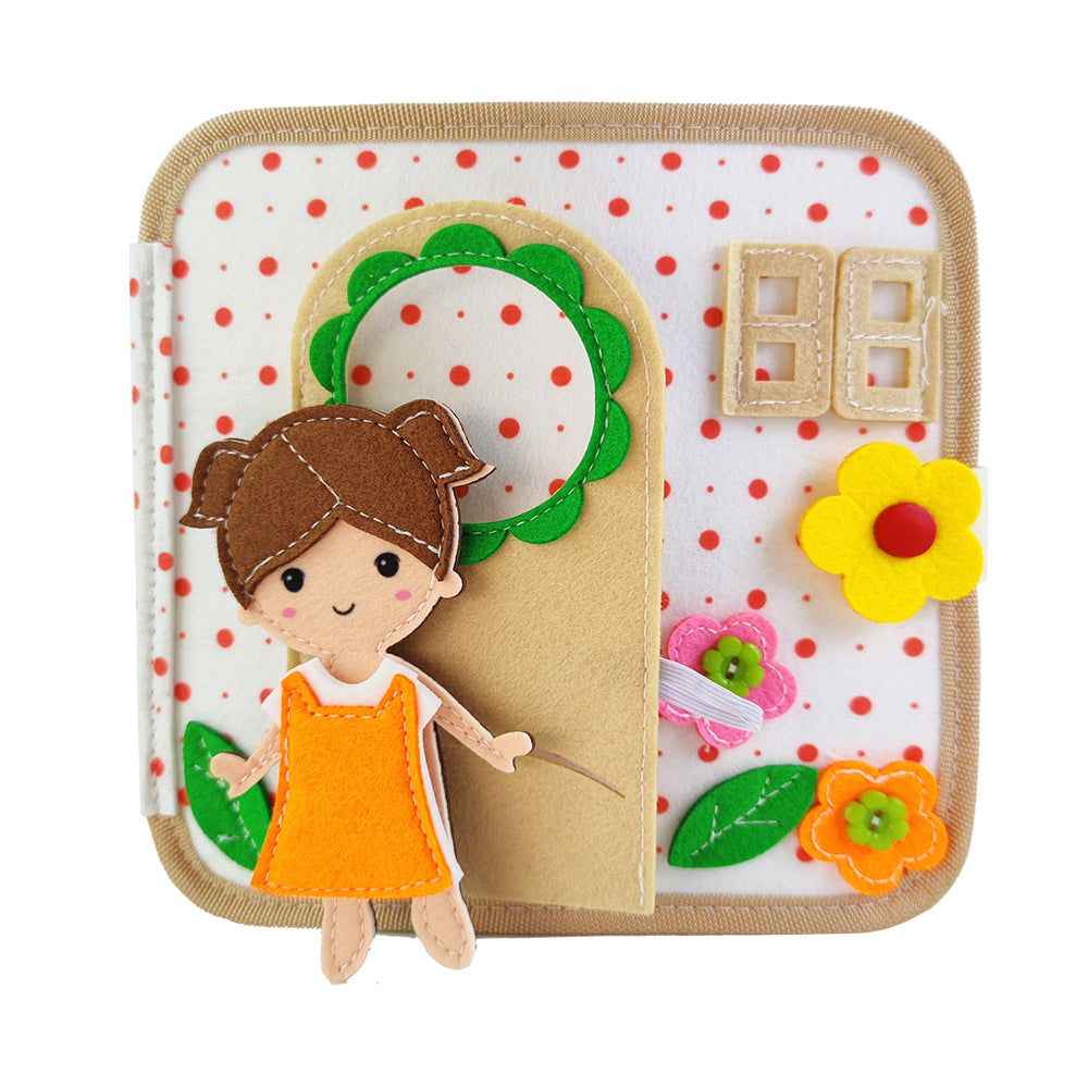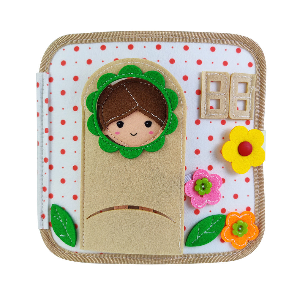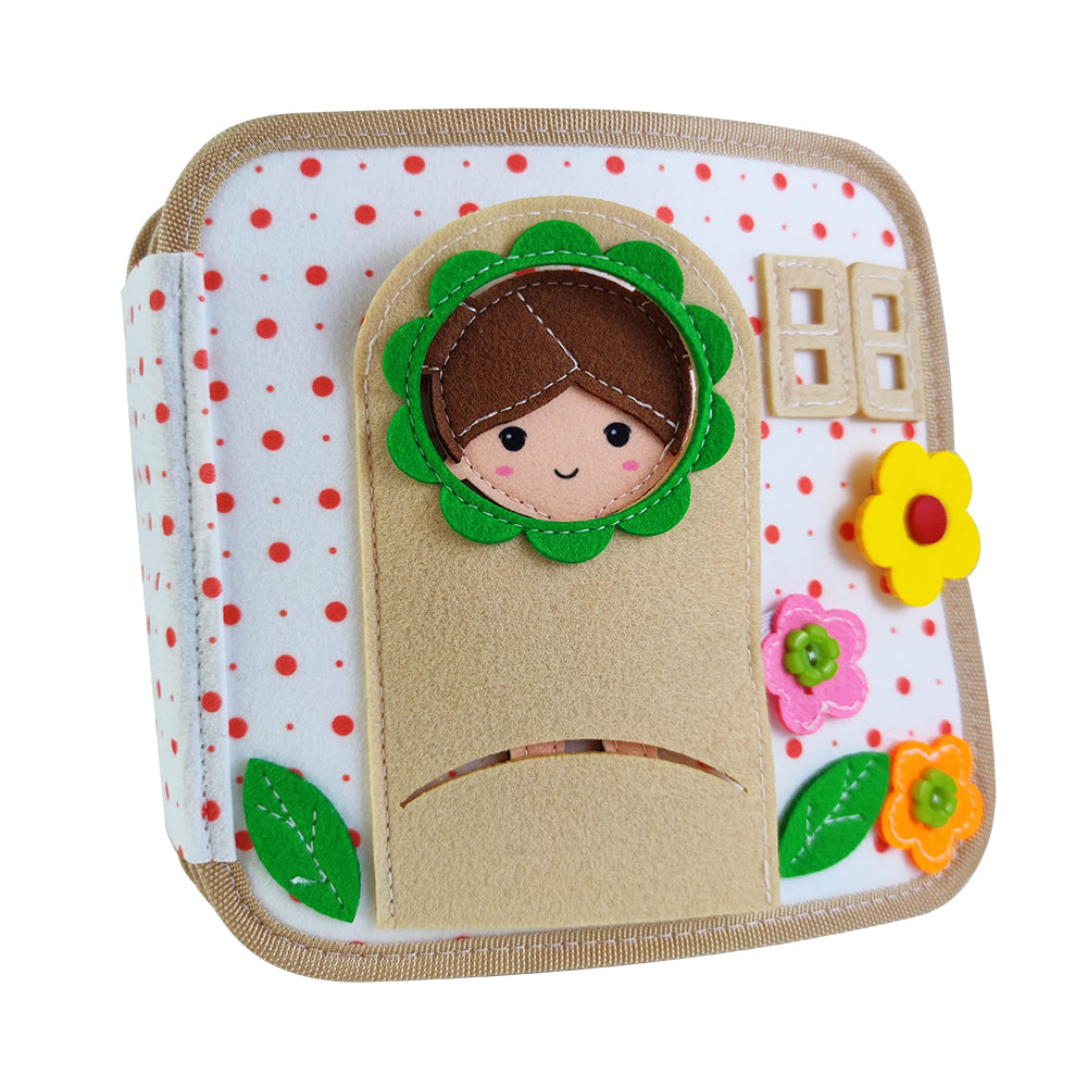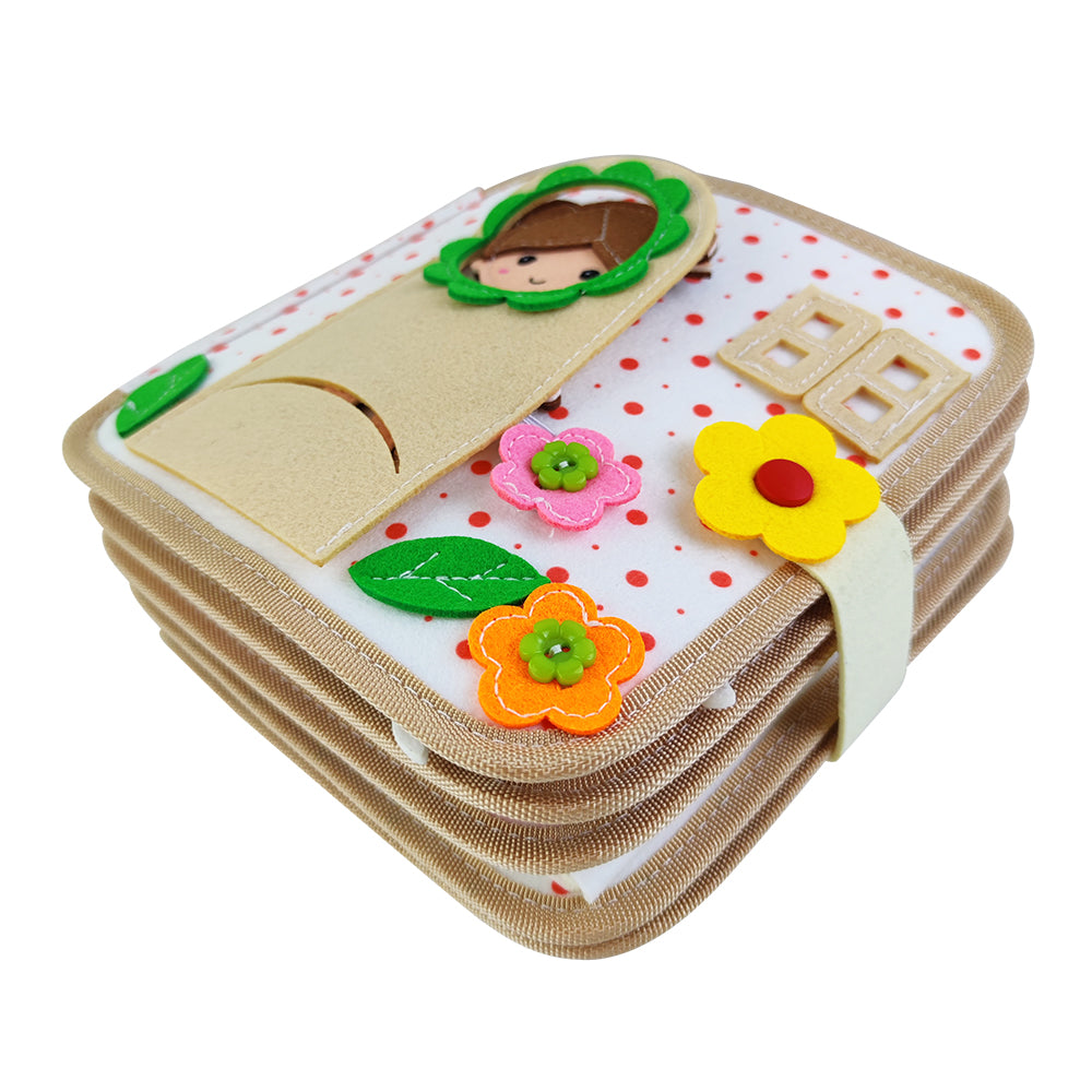 Fluisterboekjes zijn zachte, handgemaakte speelboekjes die kinderen uitdagen om te knopen, ritsen, sorteren, matchen en ontdekken.