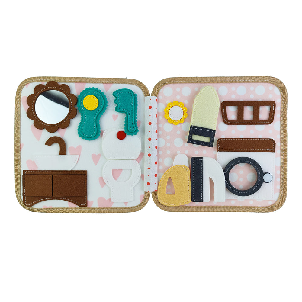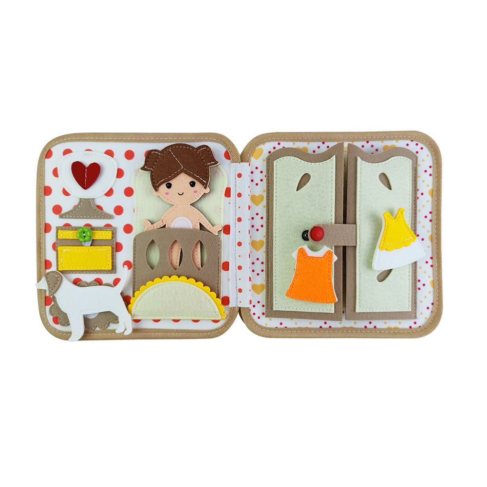 Het boekje zit vol afneembare onderdelen, bewegende elementen en speelse accessoires die meisjes uitnodigen tot rollenspel, zelfstandig ontdekken en fantasierijk spelen. Van verzorgen tot kleine huishoudelijke taakjes — het boekje laat meisjes ervaren hoe leuk het is om mee te helpen en zich verantwoordelijk te voelen in hun eigen spelwereld.